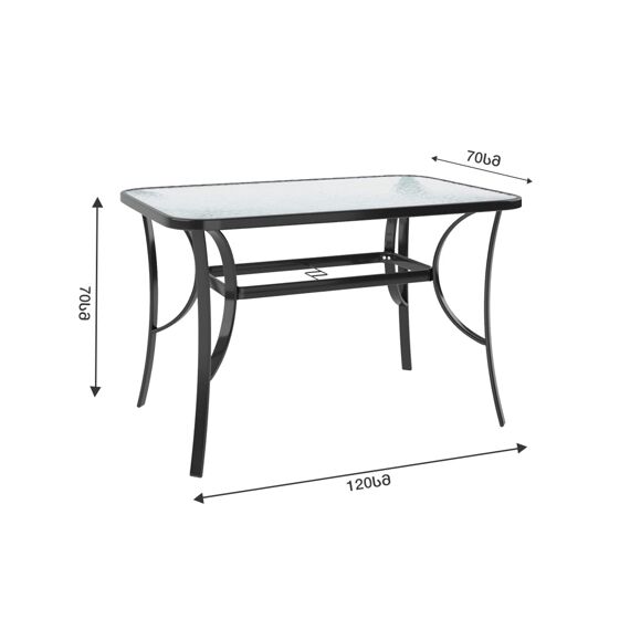 ნაკრებში შედის 1 მაგიდა, ქოლგის სამაგრით ზომით : 120*70*70