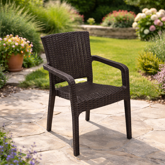 Comfort Time-ის პლასტმასის სკამი არის პრაქტიკული და ესთეტიკური გადაწყვეტა გარე სივრცეებისთვის. მისი თანამედროვე დიზაინი და რატანის იმიტაციის ტექსტურა სკამს ანიჭებს ელეგანტურ იერს, რაც მარტივად ერწყმის ბაღის, ტერასისა და აივნის ინტერიერს.
