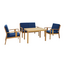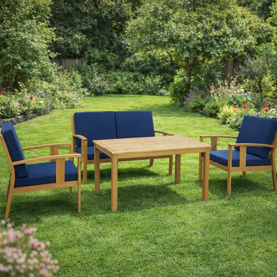 ხის თბილი ტონი ღრმა ლურჯი ფერის რბილ ბალიშებთან ერთად კომპლექტს ანიჭებს თანამედროვე და ამავე დროს დამამშვიდებელ ხასიათს, რომელიც ჰარმონიულად ერგება როგორც კერძო სივრცეს, ასევე კომერციულ ლაუნჯ-ზონებს. ბაღის ავეჯის კომპლექტი დამზადებულია გამძლე და ცვეთამედეგი ევკალიპტის ხისგან, რომელიც ცნობილია გარემო ზემოქმედებებისადმი მდგრადობითა და ხანგრძლივი ექსპლუატაციის ვადით. დიზაინი უზრუნველყოფს კომფორტულ სავარძლებს, ხოლო ბალიშები დასვენებას განსაკუთრებულად სასიამოვნოსა და ხანგრძლივი კომუნიკაციისთვის ხელსაყრელს ხდის. კომპლექტში შედის მაგიდა ზომით 110 × 70 × 64 სმ, ორადგილიანი დივანი 118 × 67 × 80 სმ, ორი სკამი 62 × 67 × 80 სმ და ბალიშები. კომპაქტური გაბარიტები საშუალებას გაძლევთ კომპლექტი მოხერხებულად განათავსოთ შეზღუდულ სივრცეშიც, შექმნათ სრულფასოვანი ადგილი დასვენებისთვის სუფთა ჰაერზე.