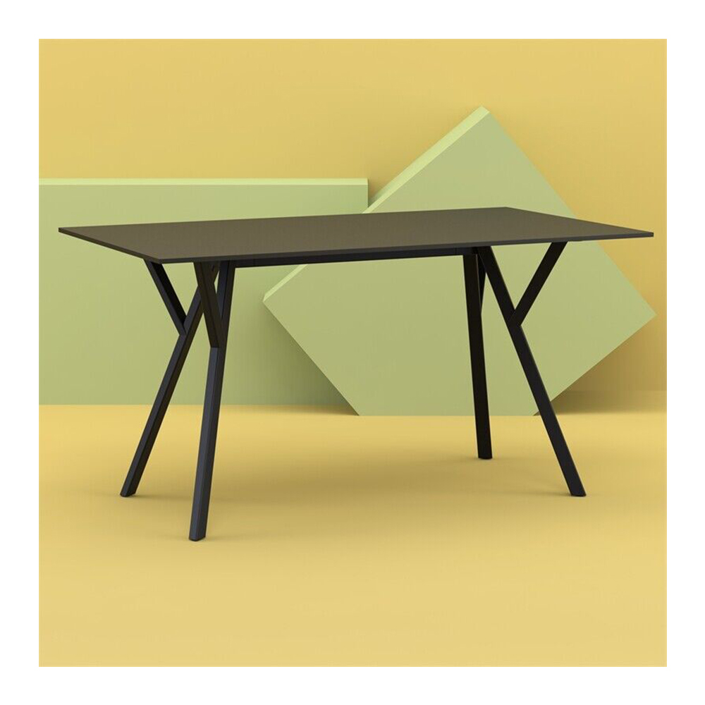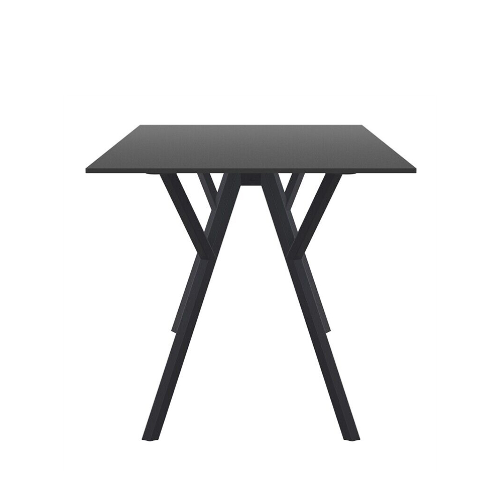 ეს მაგიდა თანამედროვე და პრაქტიკული გადაწყვეტაა როგორც გარე, ისე შიდა სივრცისთვის. მისი მართკუთხა ფორმა და მინიმალისტური დიზაინი მარტივად ერგება ტერასას, აივანს, ეზოს ან კაფე სივრცეს. შავი ფერი ქმნის ელეგანტურ და უნივერსალურ ვიზუალს, რომელიც კარგად ერწყმის სხვადასხვა სტილს.