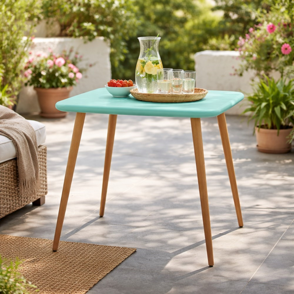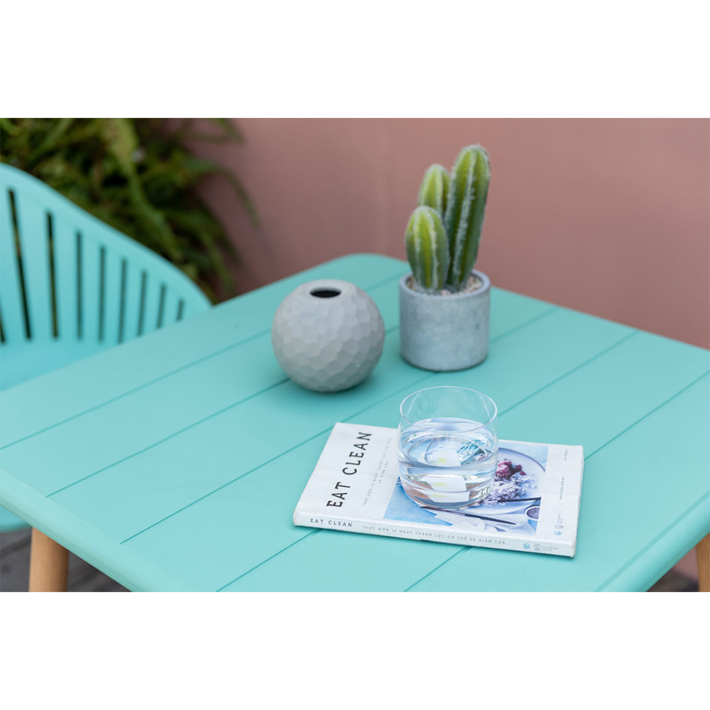 მაგიდა გამოირჩევა მინიმალისტური და თანამედროვე დიზაინით, რომელიც მარტივად ერგება როგორც შიდა, ისე გარე სივრცეებს. მისი კვადრატული ფორმა უზრუნველყოფს კომფორტულ განთავსებას მცირე და საშუალო ზომის სივრცეებში — იდეალურია აივნისთვის, ტერასისთვის, ბაღისთვის ან სამზარეულოს ზონისთვის.