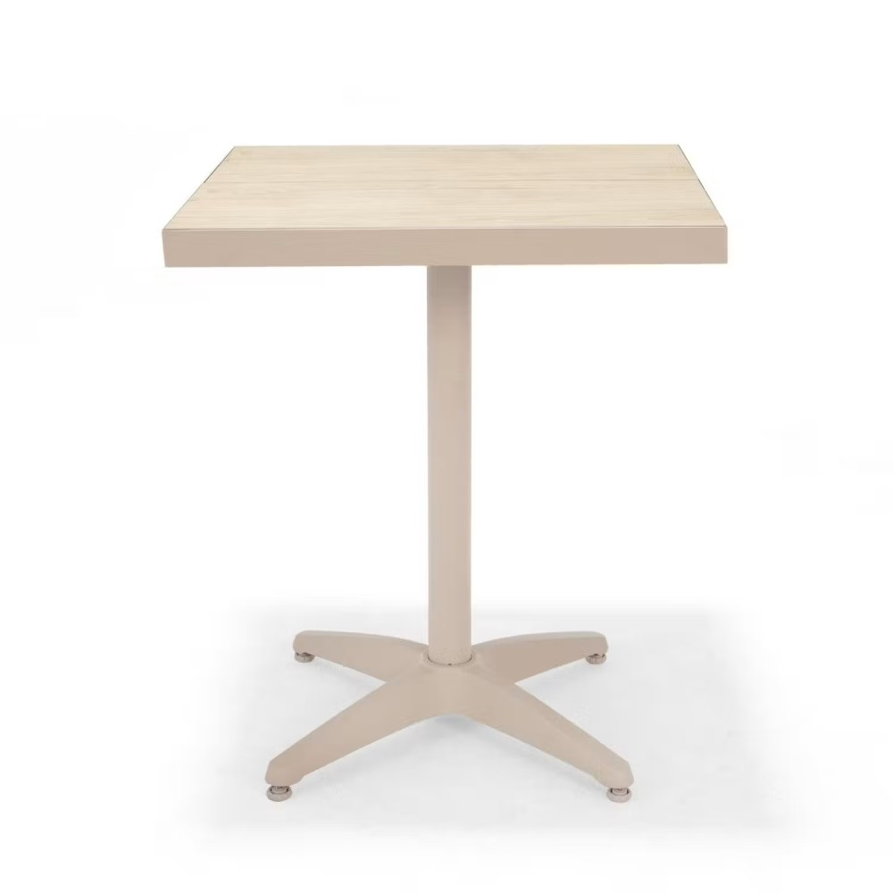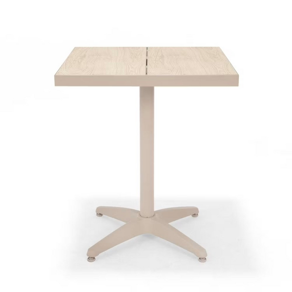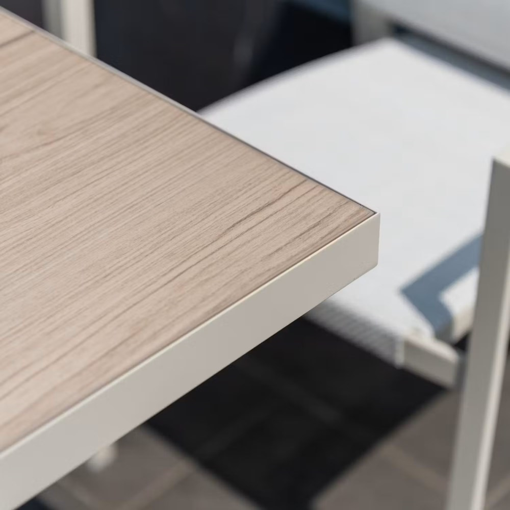 მინიმალიზმი, გამძლეობა და ფუნქციურობა ერთ სივრცეში. ეს კომპაქტური, კვადრატული მაგიდა იდეალურია როგორც კაფეებისა და რესტორნებისთვის, ისე აივნებისა თუ პატარა გარე სივრცეებისთვის. Duraboard®-ის გაყოფილი ზედაპირი, დამზადებული FSC® სერტიფიცირებული ხისა და მაღალი ხარისხის პოლიეთილენისგან, გამოირჩევა გამორჩეული მდგრადობით და არ საჭიროებს მოვლას. უჟანგავი ალუმინის ჩარჩო უზრუნველყოფს სტაბილურობას და ხანგრძლივ სერვისს ყველანაირ ამინდში.