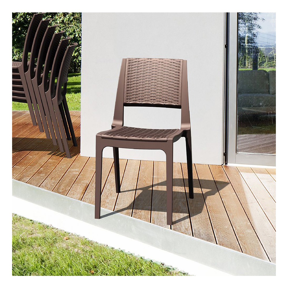 ბაღის ეს სკამი შექმნილია გარე სივრცეებში კომფორტული და პრაქტიკული გამოყენებისთვის. მისი თანამედროვე, სადა დიზაინი მარტივად ერწყმის ბაღს, ტერასას, აივანს ან ვერანდას და სივრცეს აძლევს მოწესრიგებულ და მყუდრო იერს. სკამი დამზადებულია გამძლე პოლიპროპილენისგან, რომელიც მდგრადია ტენიანობისა და მზის ზემოქმედების მიმართ, რაც უზრუნველყოფს ხანგრძლივ ექსპლუატაციას გარე პირობებში. მსუბუქი კონსტრუქცია საშუალებას გაძლევთ მარტივად გადაადგილოთ სკამი საჭიროების მიხედვით, ხოლო სტაბილური ფეხები უზრუნველყოფს საიმედოობას ყოველდღიური გამოყენებისას.