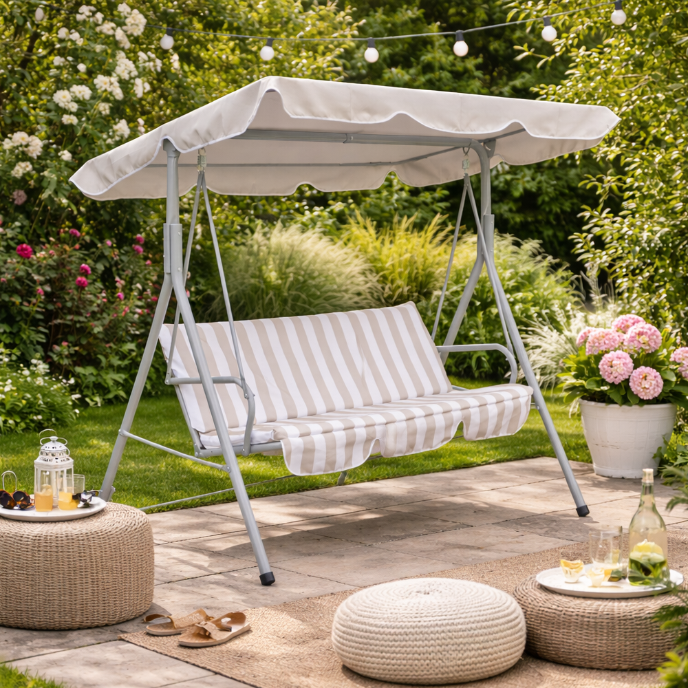 საქანელა ბაღის 3 ადგილიანი 170x110x152 სმ თეთრი/ყავისფერი