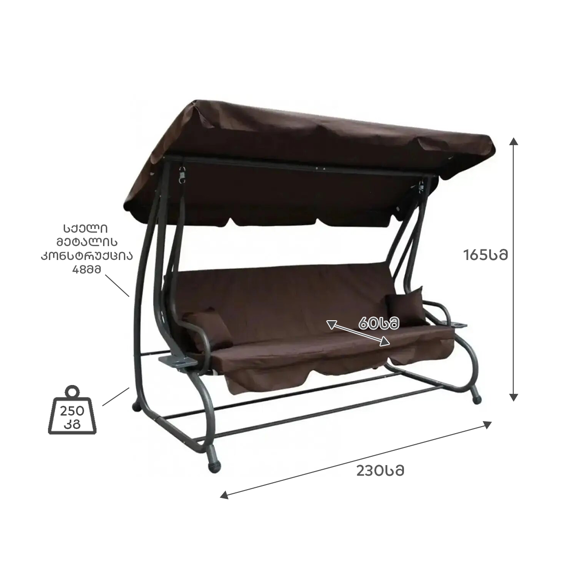 3 ადგილიანი პრემიუმ საქანელა - გასაშლელი SC-405 BROWN