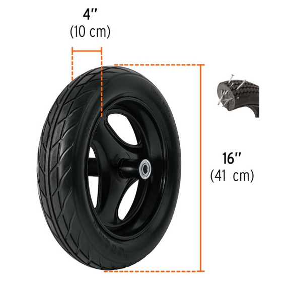 რბილი და მსუბუქი პოლიურეთანის რეზინის ბორბალი სამფრთიანი რკალით უზრუნველყოფს შესანიშნავ ამორტიზაციას, მომატებული სიმტკიცის კრონშტეინი, მომატებული მდგრადობა ნებისმიერი ტიპის ზედაპირზე.