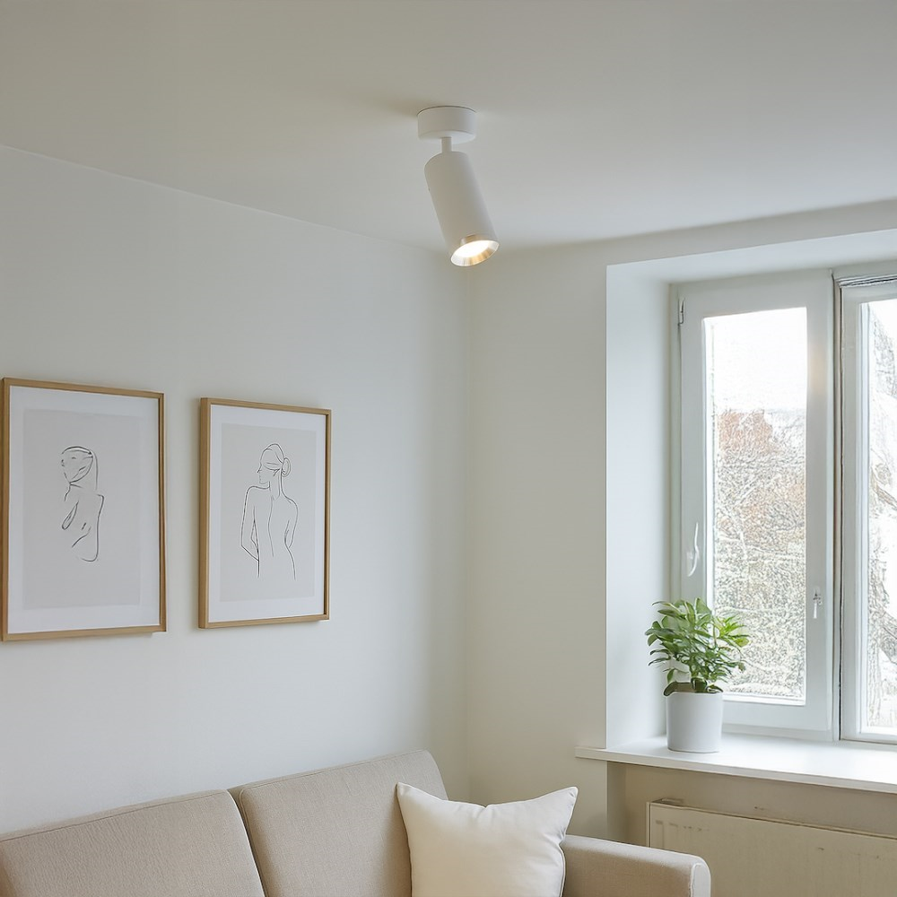 მინიმალისტური და თანამედროვე დიზაინის სპოტ სანათი, რომელიც იდეალურად ერგება როგორც ბინას, ისე კომერციულ სივრცეებს. მბრუნავი მექანიზმი საშუალებას იძლევა განათება მიმართოთ სასურველი მიმართულებით. გამძლე მეტალის კორპუსი და თეთრი მატური საფარი ქმნის ელეგანტურ იერს.