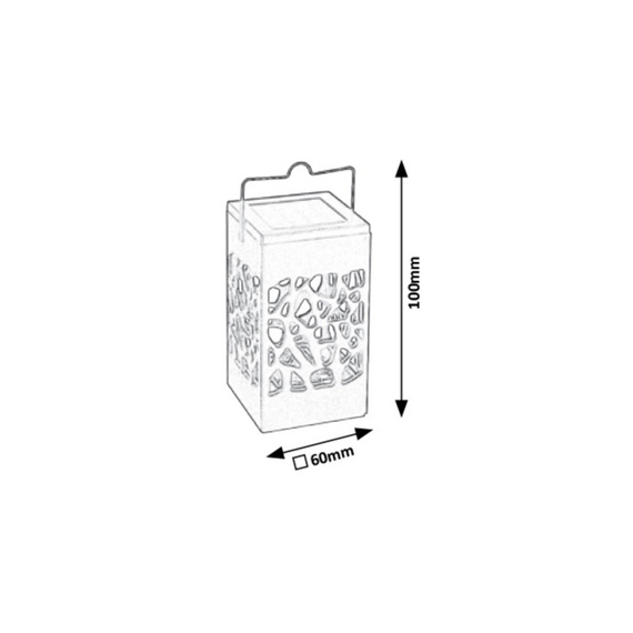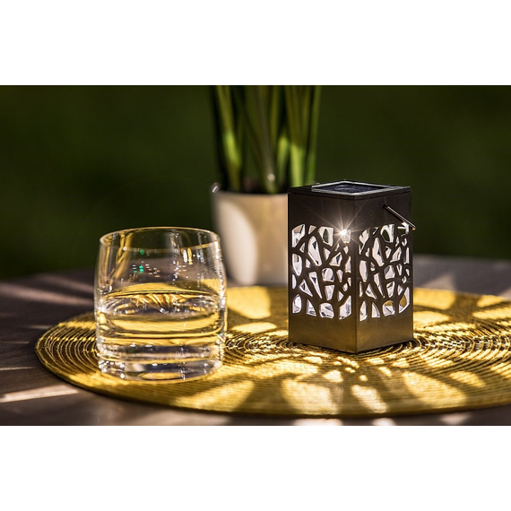 Mora მზის სანათი იქნება ძალიან მყუდრო დამატება თქვენი ვერანდის ან ბაღისთვის. შეგიძლიათ დადოთ მაგიდაზე, ან სადმე ჩამოკიდოთ კიდეც. შავი, დასაკიდი დეკორატიული ნათურა დამზადებულია პლასტმასისგან და მისი ჩაშენებული LED სინათლის წყარო წარმოქმნის თბილ თეთრ შუქს. ენერგიის დაზოგვის სინათლის წყაროს სიმძლავრეა 0,07 W, სინათლის ინტენსივობა 1,2 ლუმენი, ფერის ტემპერატურა 3000 K და სიცოცხლის ხანგრძლივობა 20 000 საათი. მზის ელემენტის მონაცემები: AAA NiMH 200 mAh. კვადრატული ფორმის, 60x60 მმ გარე დეკორატიული სანათის სიმაღლეა 100 მმ.