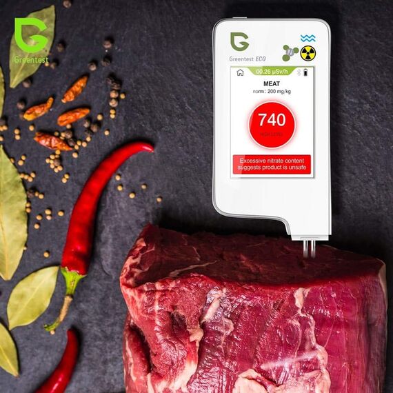 დამატებითი ინფორმაცია: დეტექტორი 0-9999 მგ/კგ-ის დიაპაზონში ზომავს ნიტრატებს შემდეგ ხილსა და ბოსტნეულში: ვაშლი, გარგარი, ავოკადო, ბანანი, ალუბალი, ციტრუსები, ქოქოსი, დურიანი, ყურძენი, გუავა, კივი, ჯეკფრუტი, ნებისმიერი ტიპის კენკრა, მანგო, ნესვი, ვაშლატამა, პაპაია, ატამი, მსხალი, კარალიოკი, ანანასი, ქლიავი, მარწყვი, საზამთრო, პიტაია (დრაკონის ხილი), კარამბოლა. სატაცური, ჭარხალი, წიწაკები, გოგრა, ბროკოლი, სტაფილო, კომბოსტო, ჩინური კომბოსტო, ყვავილოვანო კომბოსტო, ნიახური, ბოლოკი, სიმინდი, კიტრი, პომიდორი, ნიორი, ჯინჯერი, სალათის ფურცელი, ყაბაყი, სოკო, ხახვი, კარტოფილი, ლობიო. ასევე ხორცსა და თევზში. წყლის სიხისტეს ზომავს 0-9999 მგ/ლ დიაპაზონში, ხოლო გარემოში რადიაციის დონეს 0 - 9.99 მკ/სთ შუალედში. იმუხტება USB პორტით, 310 mA-ით და მუშაობს 0-60 გრადუსამდე ტემპერატურაზე.