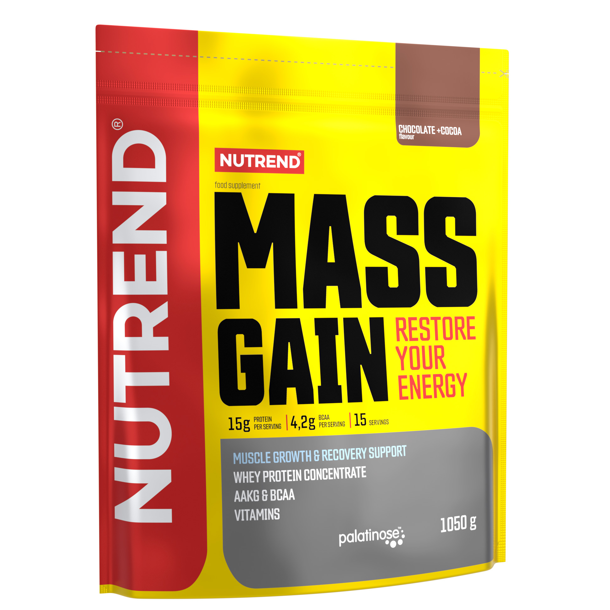 MASS GAIN NUTREND: ეს არის ახალი თაობის, ცილოვან-ნაშირწყლოვანი გეინერი, სადაც ცილის კომპონენტი წარმოდგენილია 100% შრატის პროტეინით და ნახშირწყლების სრული კომპლექსი შედგება რამდენიმე სახის ნახშირწყლებისაგან, რომელთა შორის გვხვდება დისაქარიდი იზომალტულოზა (PalatinoseTM) დაბალი გლიკემიური ინდექსით, გლუკოზა, მალტოდექსტრინი და ფრუქტოზა. MASS GAIN გამოირჩევა უნივერსალური შემადგენლობით, რომელიც მეტად აუცილებელია კუნთის მასის, ძალის და გამძლეობის ეფექტური ზრდისთვის. უფრო მეტი შედეგისთვის დამატებული აქვს AAKG, ტაურინი, BCAA, L-გლუტამინი და ვიტამინების ნაკრები, რომლებიც აუცილებელია სპორტსმენებისთვის ინტენსიური დატვირთვის დროს.
