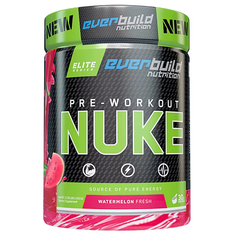 თუ ეძებთ: ახალ, განსაკუთრებულ ენერგეტიკს ძლიერი შემადგენლობით, მაშინ ამერიკული, პრემიუმ კლასის ბრენდ Everbuild Nutrition-ის უახლესი ენერგეტიკი NUKE აუცილებლად გაგაოცებთ! ამ პროდუქტის უახლესი და უძლიერესი ფორმულა განსხვავდება სხვა ენერგეტიკებისგან იმით, რომ თვითოეულ სერვინგში არის საკმაოდ დიდი რაოდენობით კოფეინი, ბეტა-ალანინი, მწვანე ჩაი და ვიტამინების კომპლექსი. NUKE-ს შემადგენლობაში ვხვდებით ისეთ ნოვთიერებებს, რომელთაც ცალ-ცალკეც იყენებენ უშუალოდ ვარჯიშის წინ მისაღებად მეტი ენერგიისთვის, ხოლო მათი კომპლექსური ფორმულა უზრუნველყოფს ორგანიზმის გამოცოცხლებას, ტონუსში მოყვანას და ამარაგებს მას კიდევ უფრო მეტი ენერგიით ინტენსიური ვარჯიშის დროს.