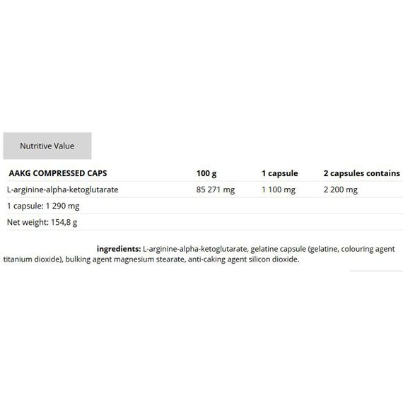 AAKG-ის იდეალური დოზირებისთვის კომპანია: NUTREND აწვდის ამინომჟავას L-არგინინს ალფა-კეტოგლუტარატთან ერთად კაფსულების სახით. მაღალი ხარისხის ჟელატინის კაფსულები ძალიან ადვილად შეიწოვება ორგანიზმში და შეიცავს აქტიური ნივთიერების ზუსტ დოზას. L- არგინინი არის ამინომჟავა აზოტის ყველაზე მაღალი პროპორციით.