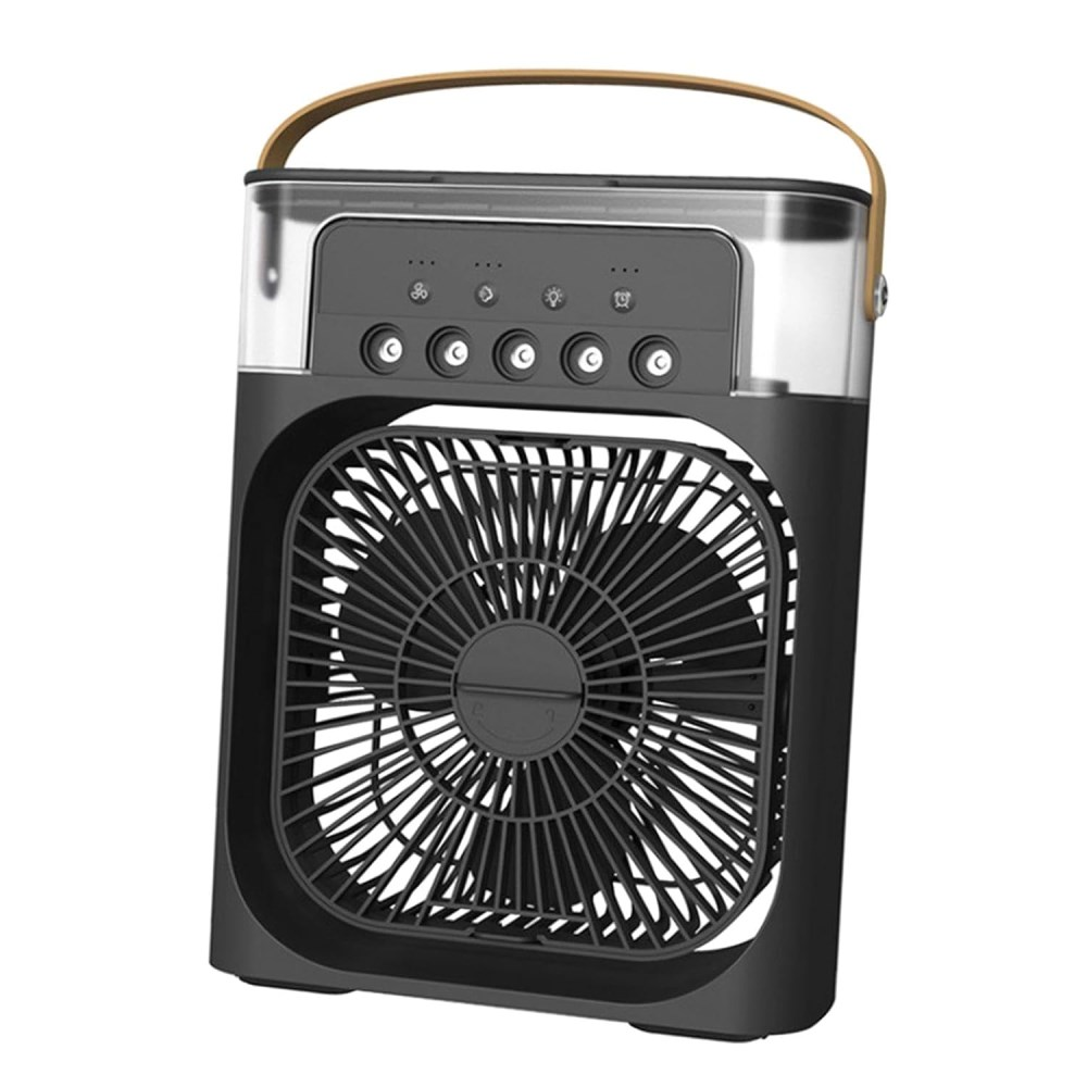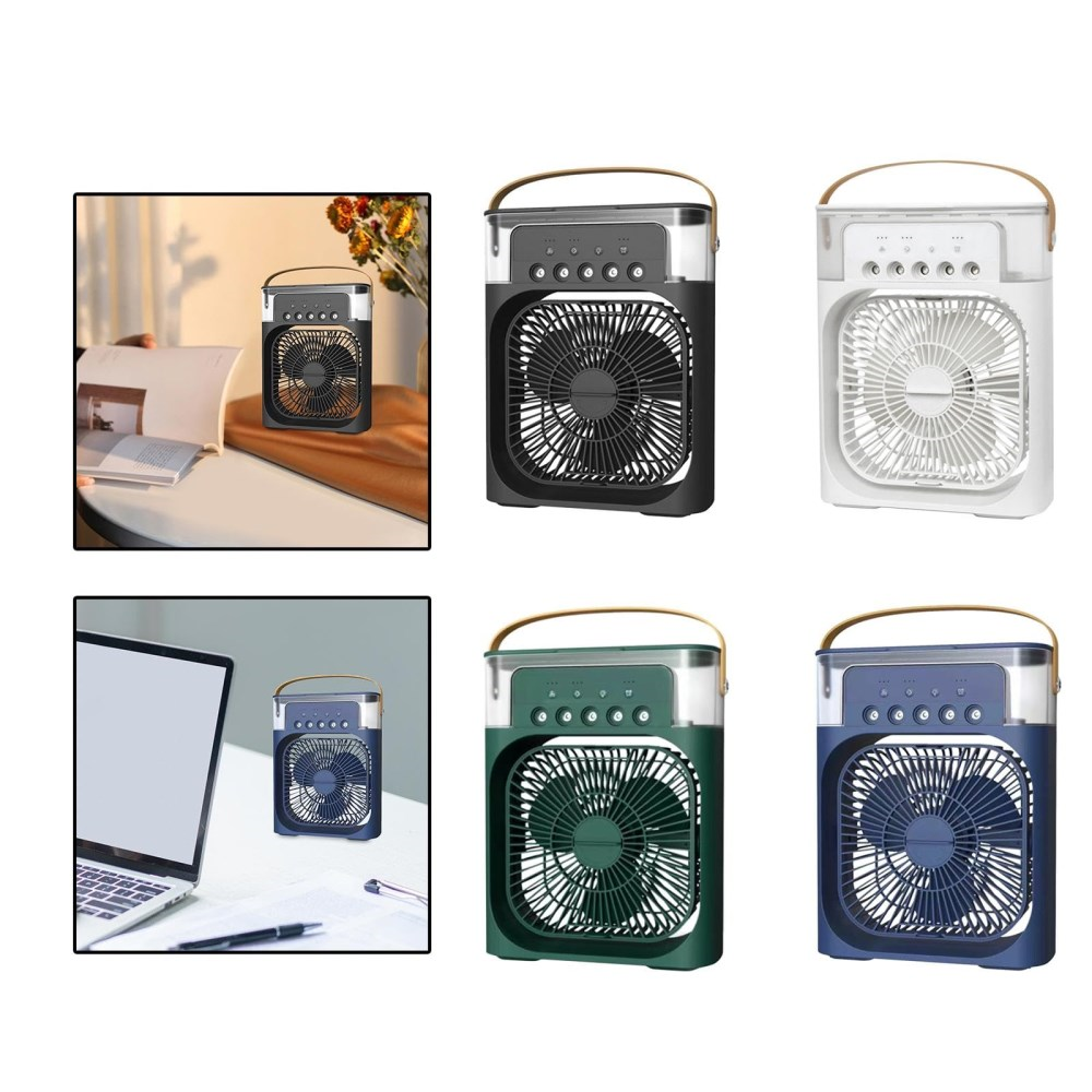 მრავალფუნქციური მაგიდის ვენტილატორი წარმოადგენს თანამედროვე და კომპაქტურ გაგრილების მოწყობილობას, რომელიც აერთიანებს ვენტილატორისა და ჰაერის დატენიანების ფუნქციებს ერთ კორპუსში. მოწყობილობა ეფექტურად აგრილებს ჰაერს, ამავე დროს ატენიანებს გარემოს, რაც განსაკუთრებით კომფორტულია ცხელ და მშრალ დღეებში. ვენტილატორს აქვს 4 სიჩქარის რეჟიმი, რაც საშუალებას გაძლევთ ჰაერის ნაკადი მოარგოთ თქვენს სურვილს. დამატებით გააჩნია 7 ფერის LED განათება, რომელიც ქმნის სასიამოვნო ატმოსფეროს, ასევე ტაიმერი 1/2/3 საათზე ავტომატური გამორთვისთვის. მოწყობილობა მუშაობს USB Type-C კვებაზე და გამოირჩევა დაბალი ენერგომოხმარებით. უხმო მუშაობა მას იდეალურს ხდის სამუშაო მაგიდისთვის, საძინებლისთვის ან ოფისისთვის.