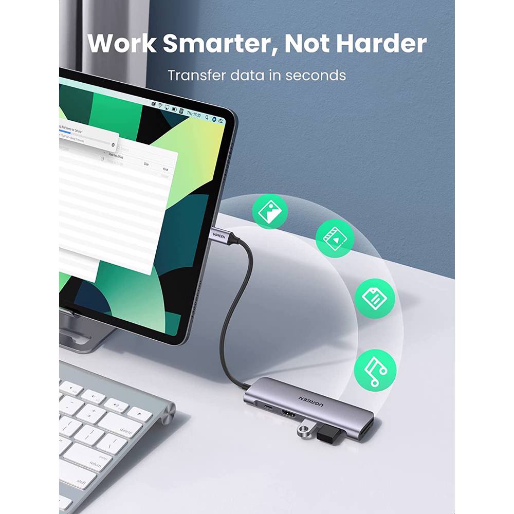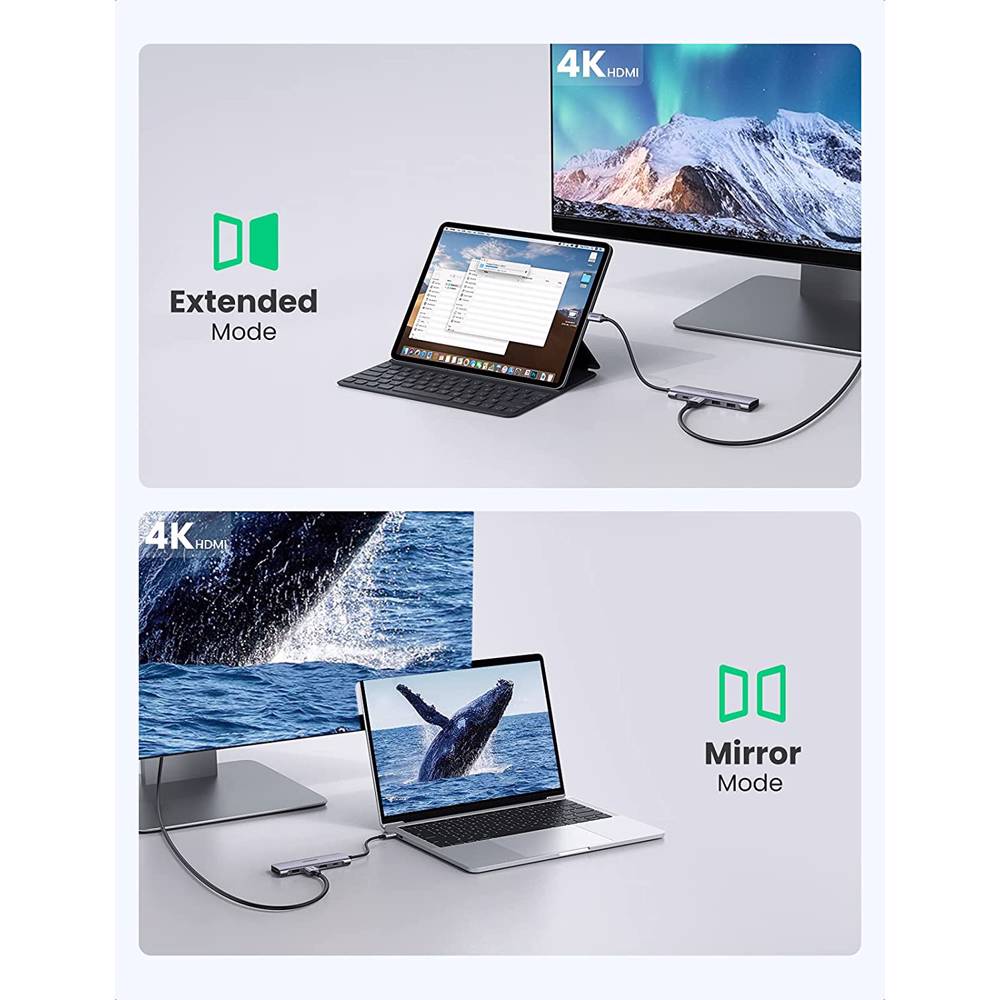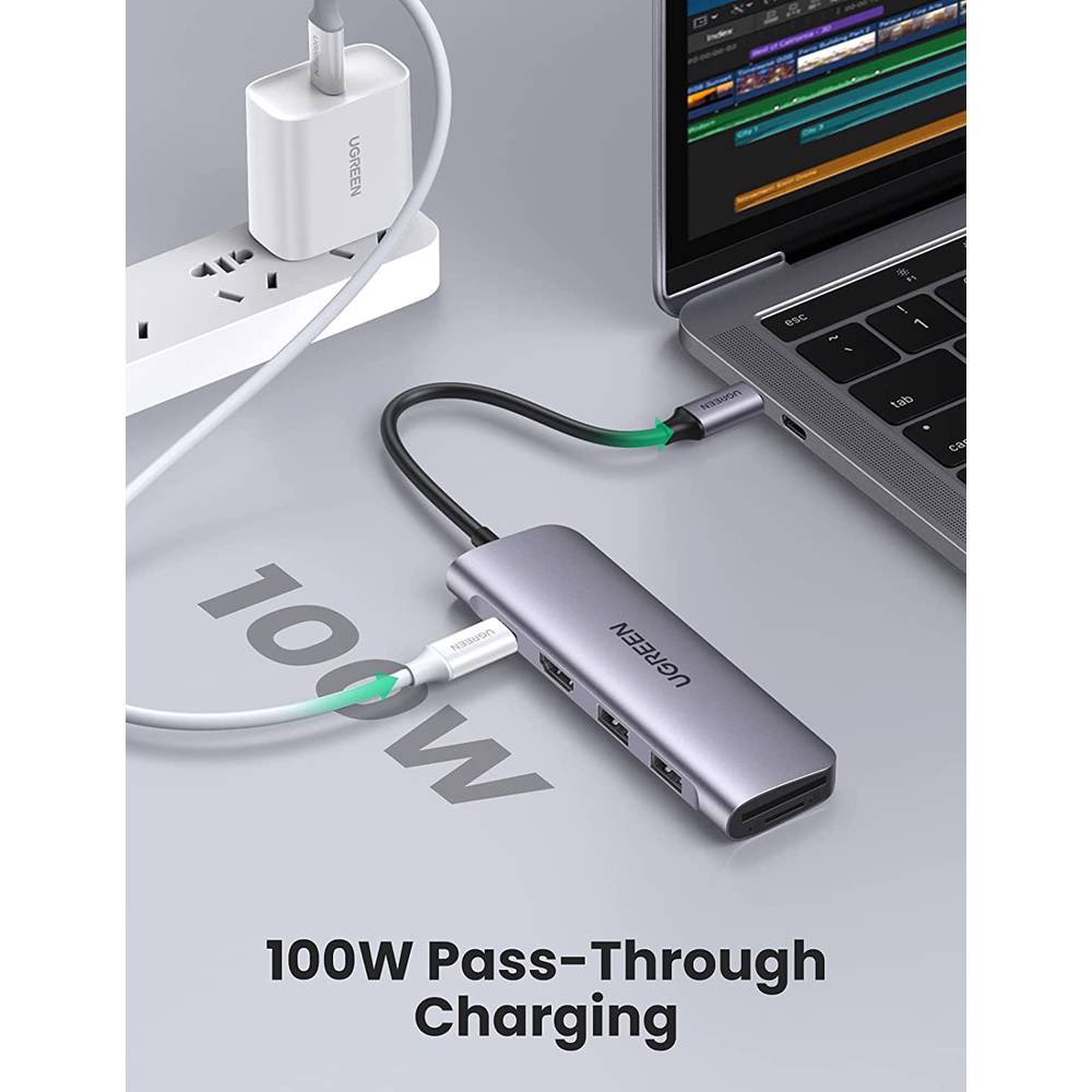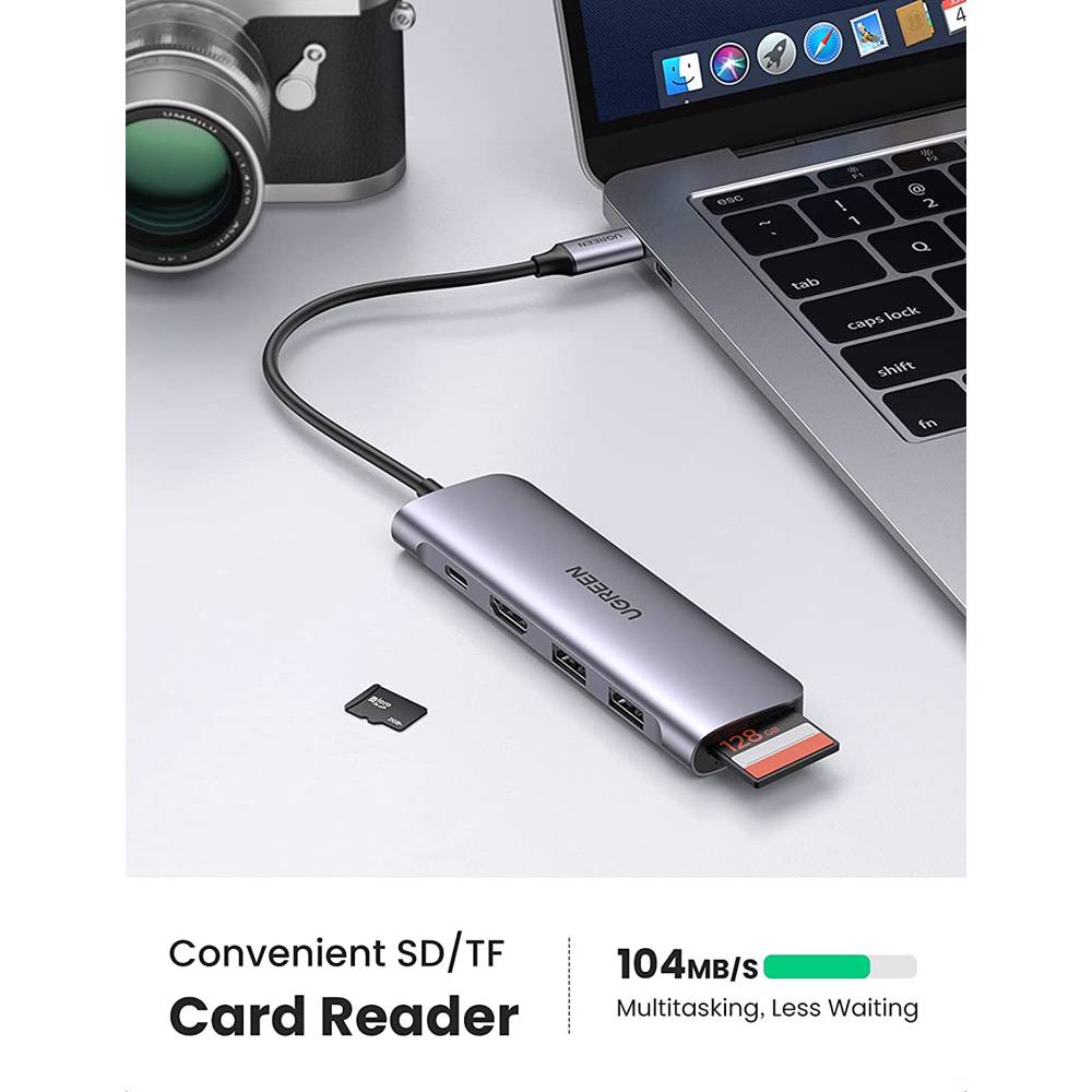USB-C ჰაბი UGREEN CM195 (70411) Type-C , USB 3.0, HDMI, TF/SD, PD, Gray