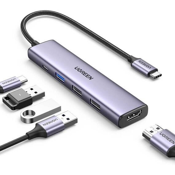 USB-C ჰაბი UGREEN CM478 (15495) Revodok 105, Type-C, USB, HDMI, PD, Hub, Grey