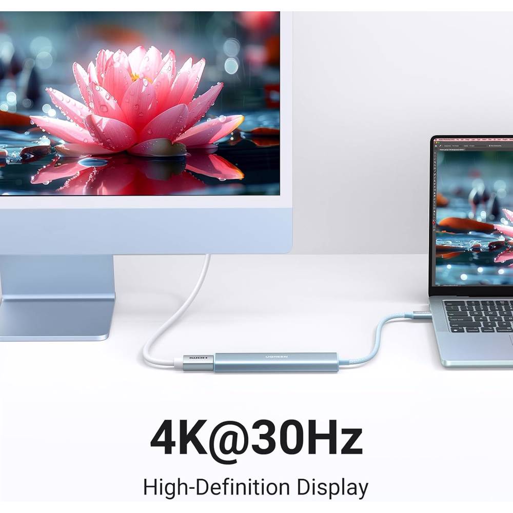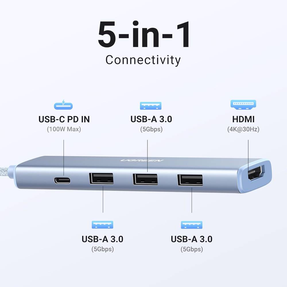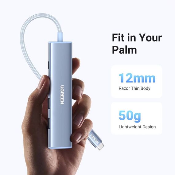 USB-C ჰაბი UGREEN CM478 (35581), USB, Type-C, HDMI, HUB, Blue