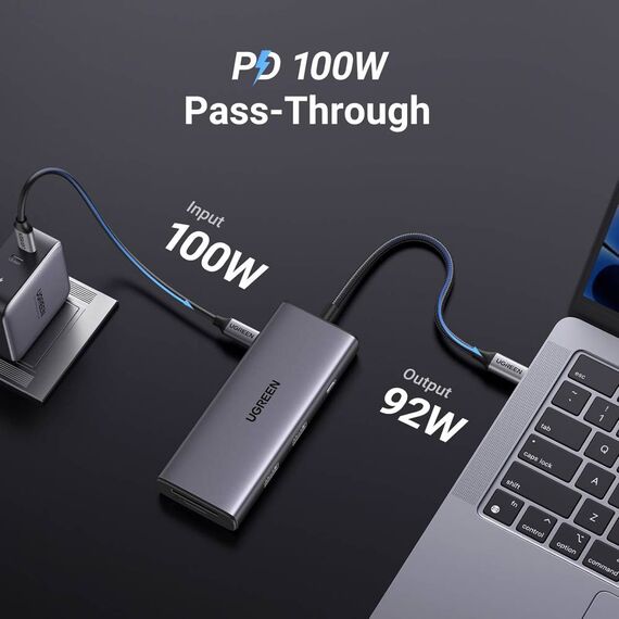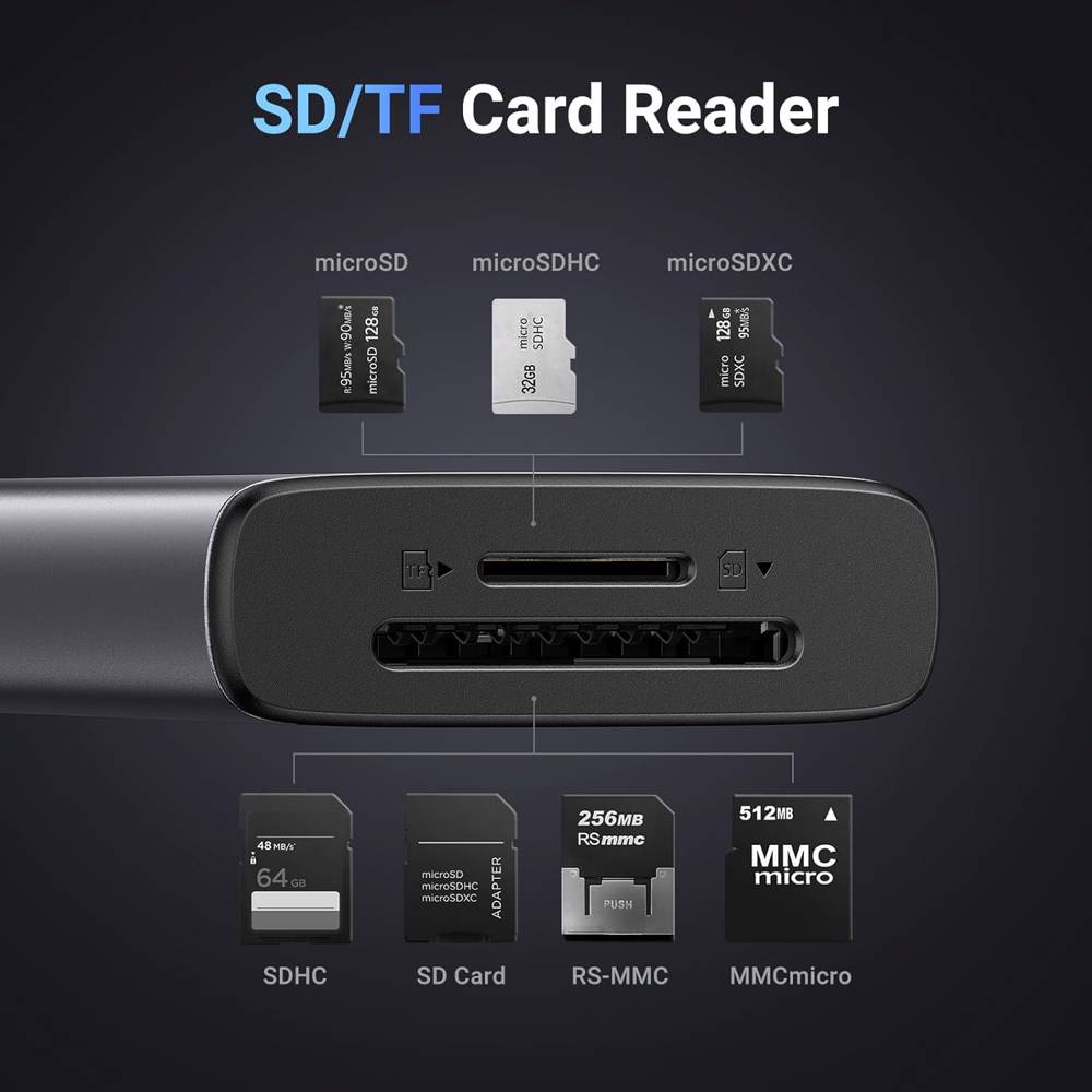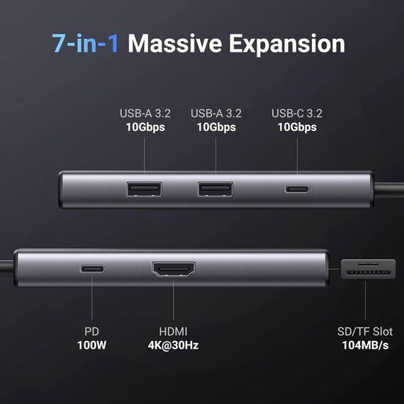 USB-C ჰაბი UGREEN CM498 (15531) Revodok Pro 107, HDMI, USB, SD/TF, Type-C, Hub, Dark Grey