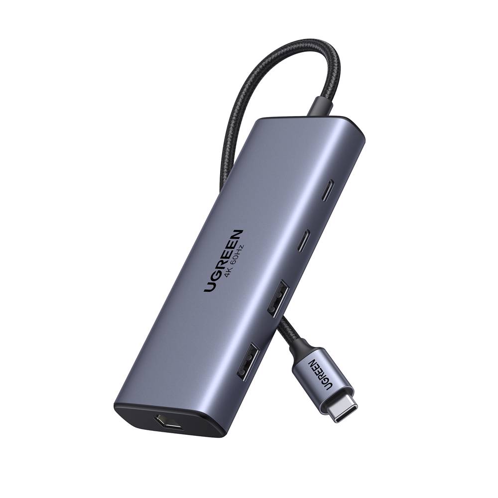 USB-C ჰაბი UGREEN CM639 (45380), HDMI, Type-C, USB-A, RJ45, SD/TF, Grey