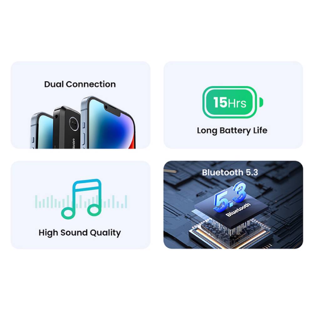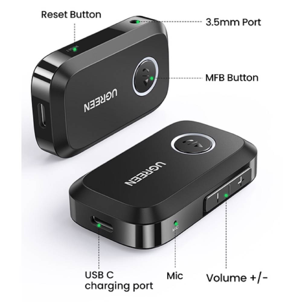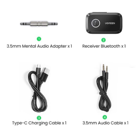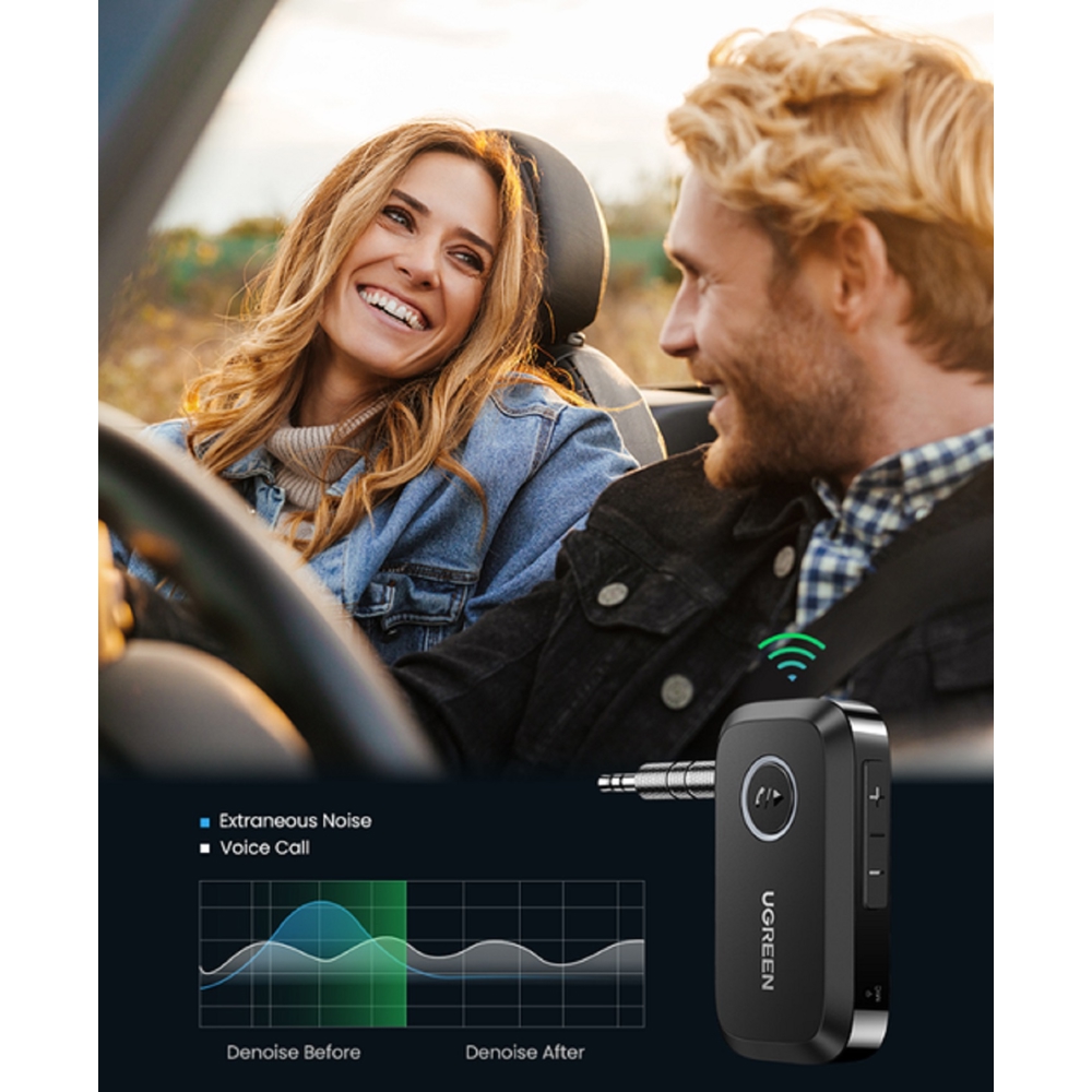 Bluetooth მიმღები UGREEN CM596 (90748), Bluetooth 5.3, AUX, Car Adapter, Black