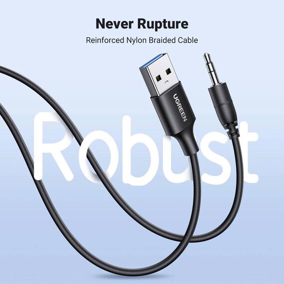 Bluetooth მიმღები UGREEN CM723(35002), Bluetooth 5.4 Aux Car Adapter, Black