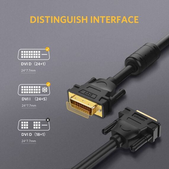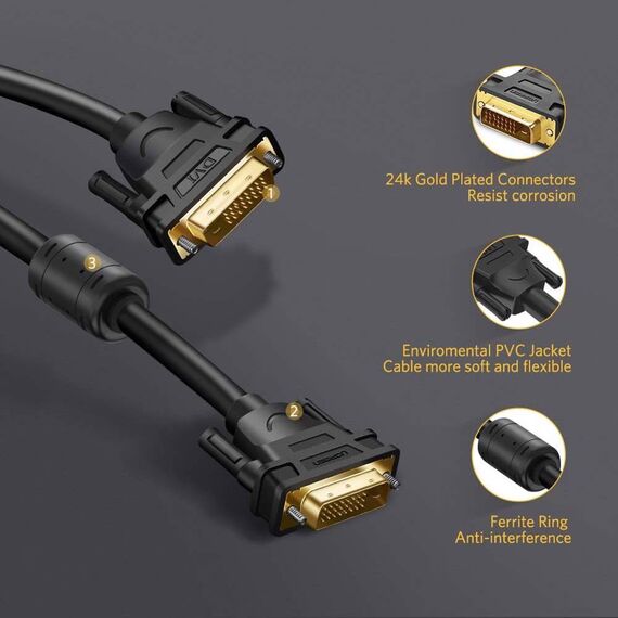 DVI კაბელი UGREEN DV101 (11607), DVI 24+1 Male To Male, 3m, Black