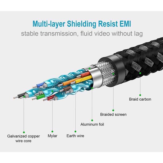 HDMI კაბელი UGREEN 50108, 4K, 2.0 HDMI to HDMI Carbon Fiber Zinc Alloy Cable, 2m, Grey