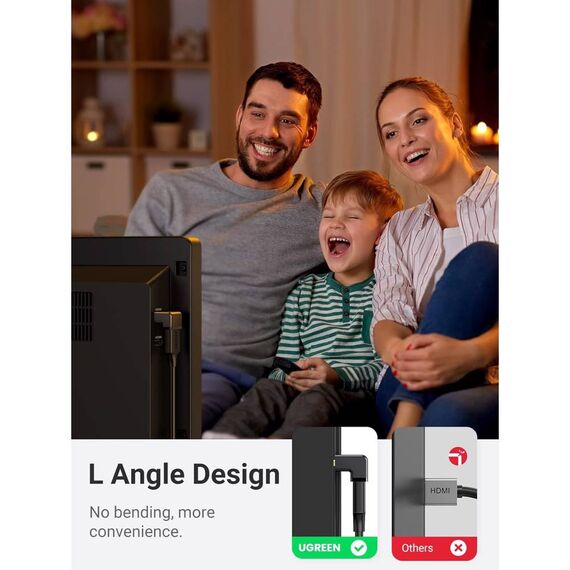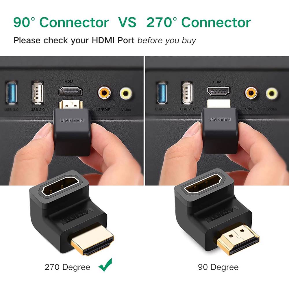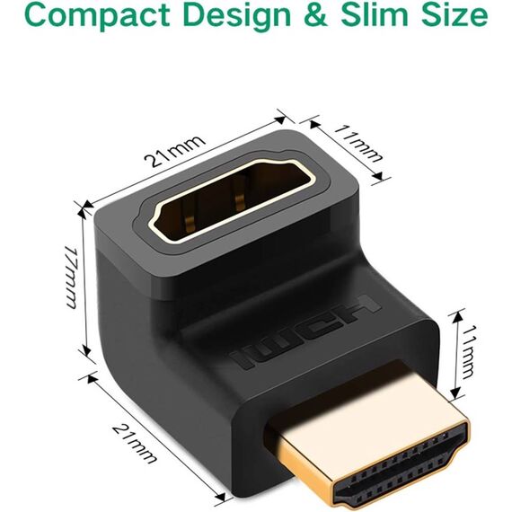 კუთხის HDMI ადაპტერი UGREEN HD112 (20110), HDMI 4K Adapter Male to Female Up-angled, Black