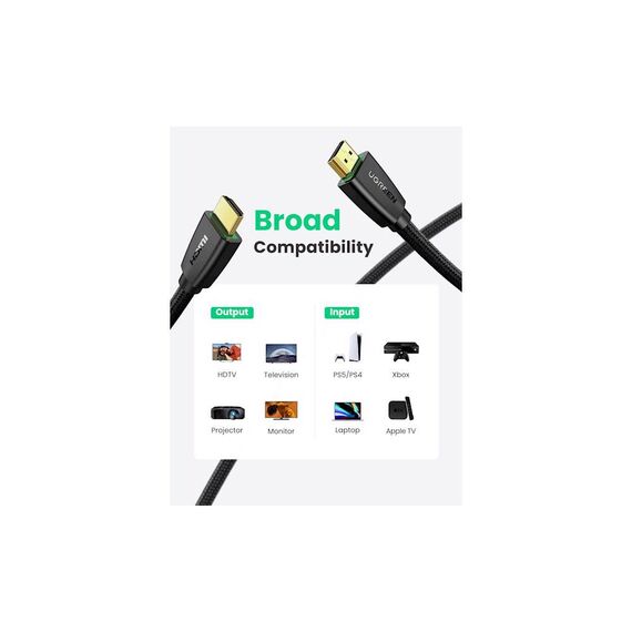 HDMI კაბელი UGREEN HD118 (40409) 4K UHD High Speed HDMI 2.0 Cable, 1.5m, Black