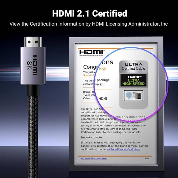 HDMI კაბელი UGREEN HD171 (25910), 8K HDMI To HDMI, 2M, Grey
