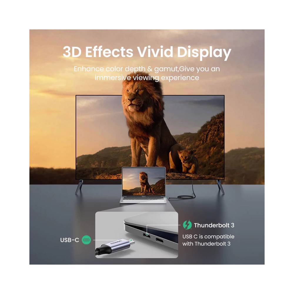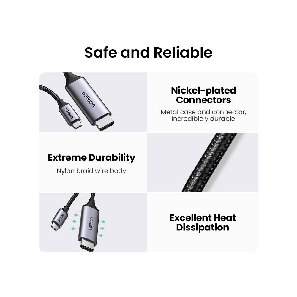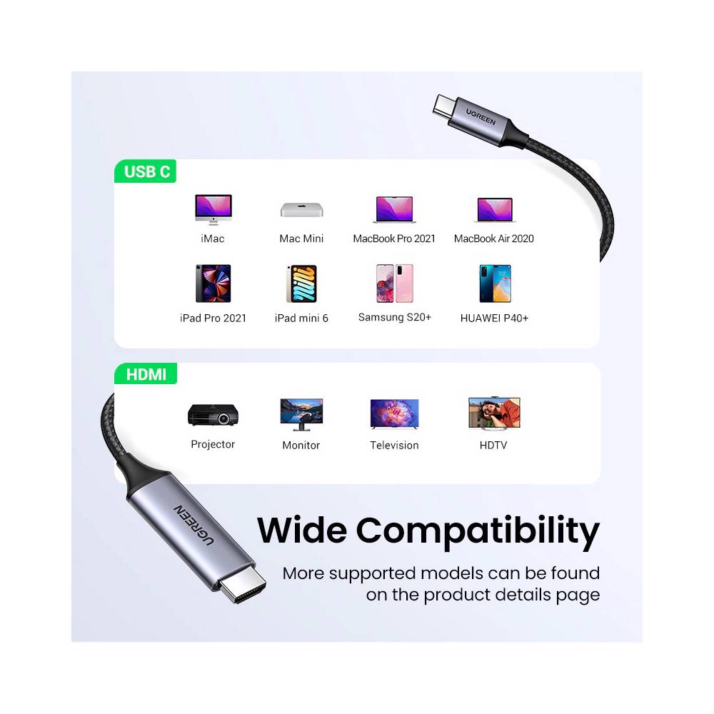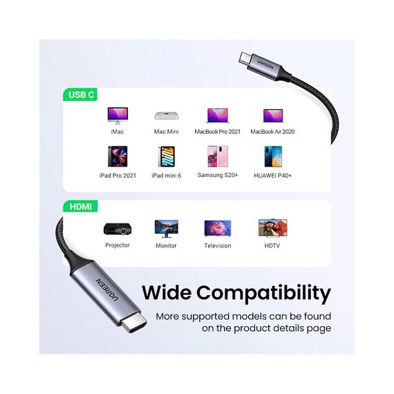 HDMI კაბელი UGREEN MM142 (50570), Type-C to HDMI Cable, 1.5m, Grey/Black
