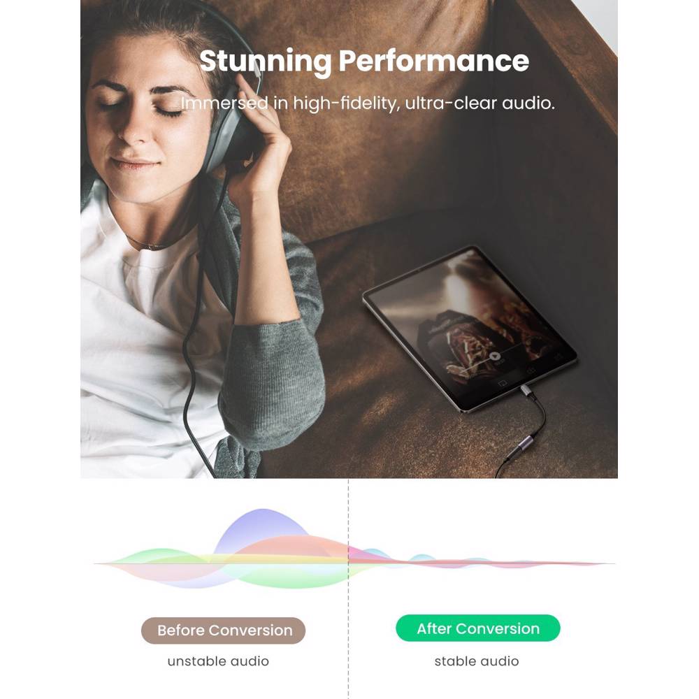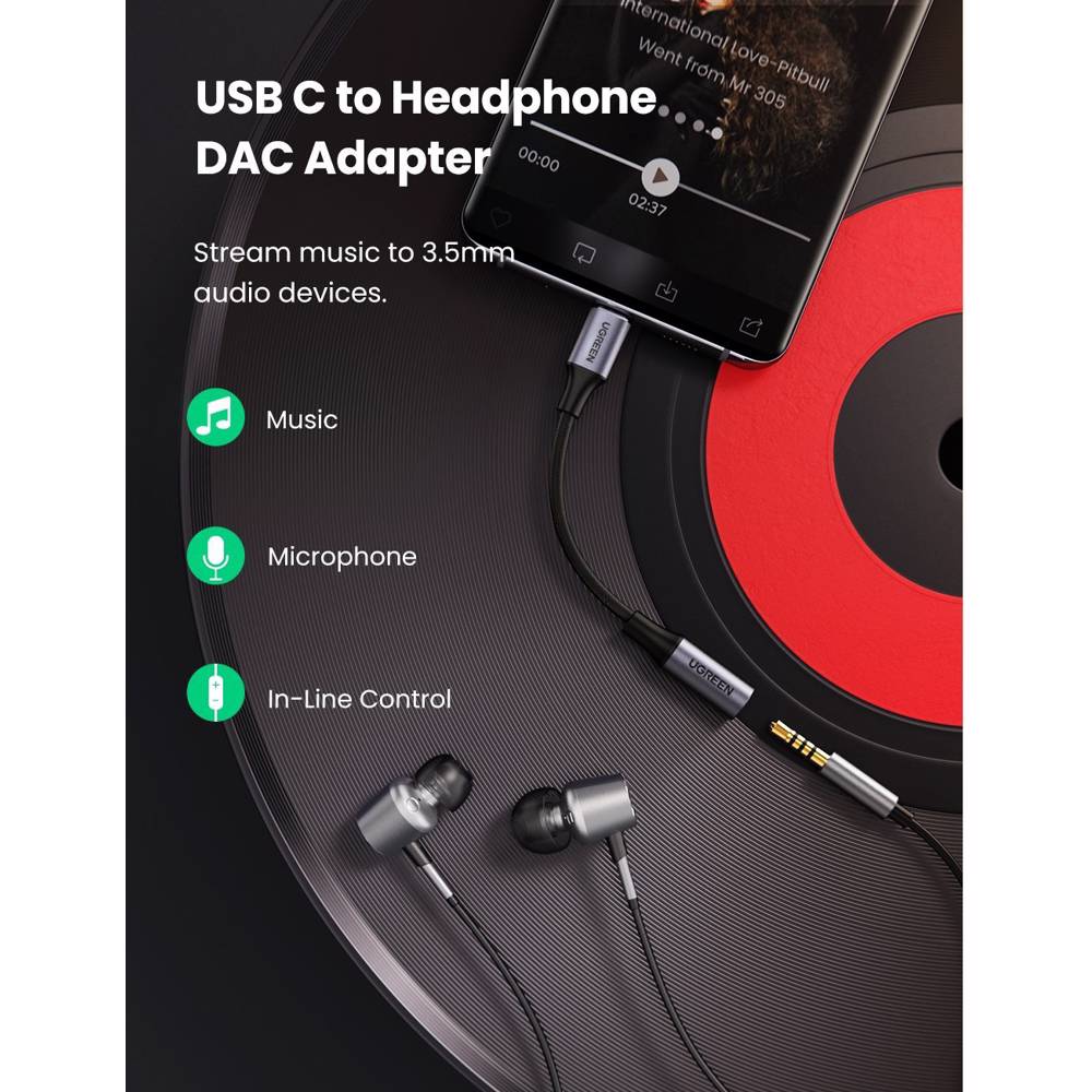 აუდიო ადაპტერი UGREEN (80154) Type-C to Aux 3.5mm Female Audio Headphone Adapter for Samsung, Google Pixel, Apple, 10cm, Space Gray