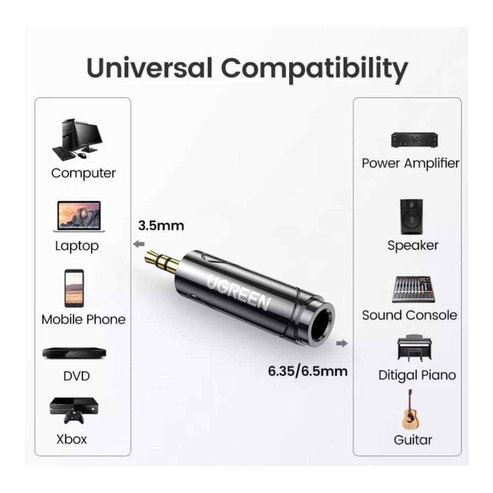 აუდიო ადაპტერი UGREEN (80730). 3.5mm to 6.35mm Audio Adapter