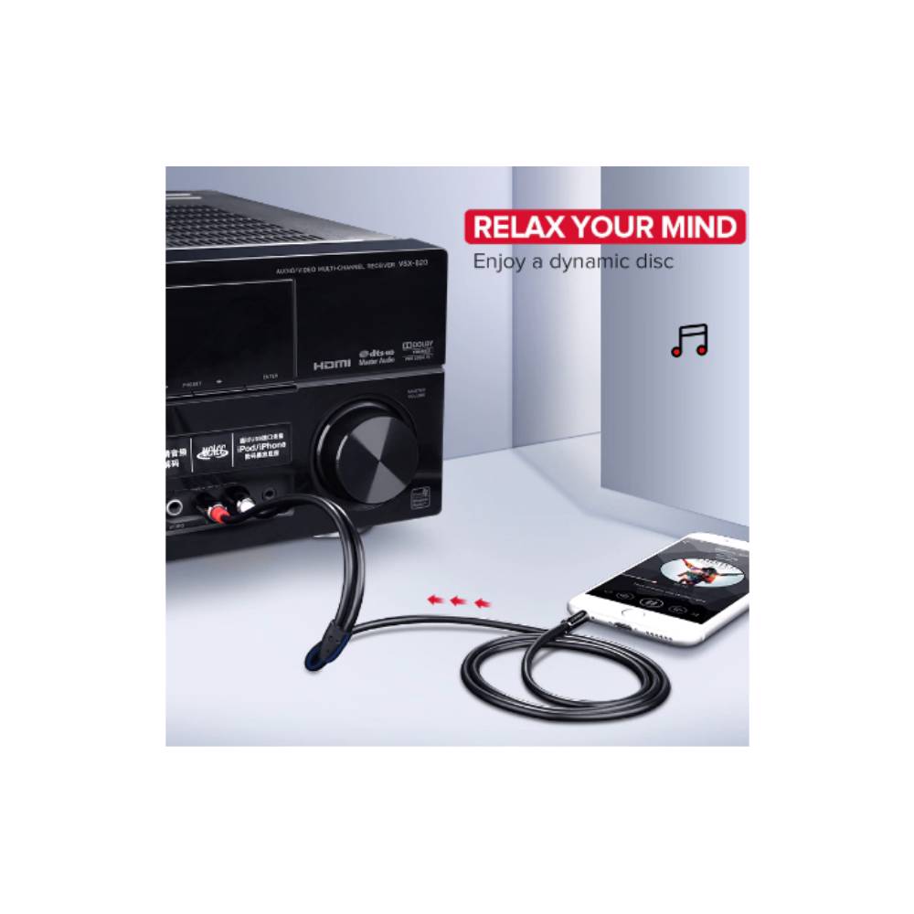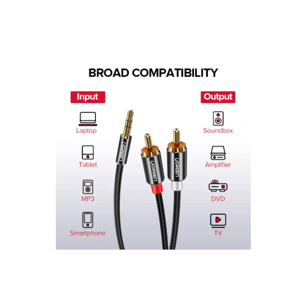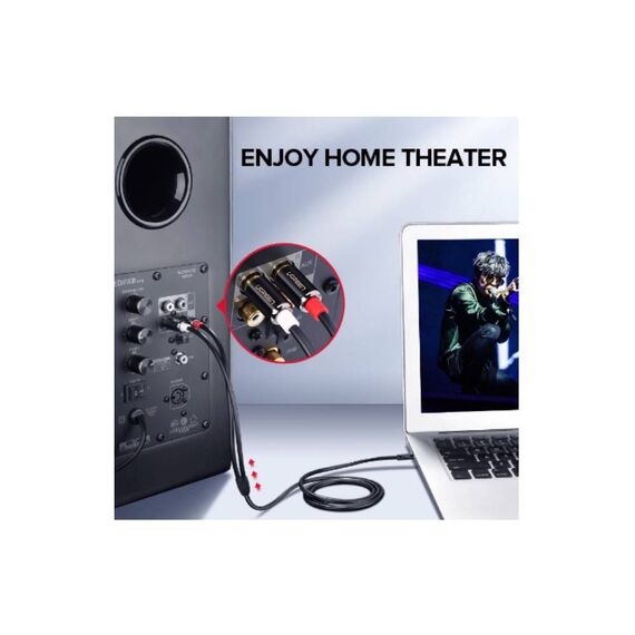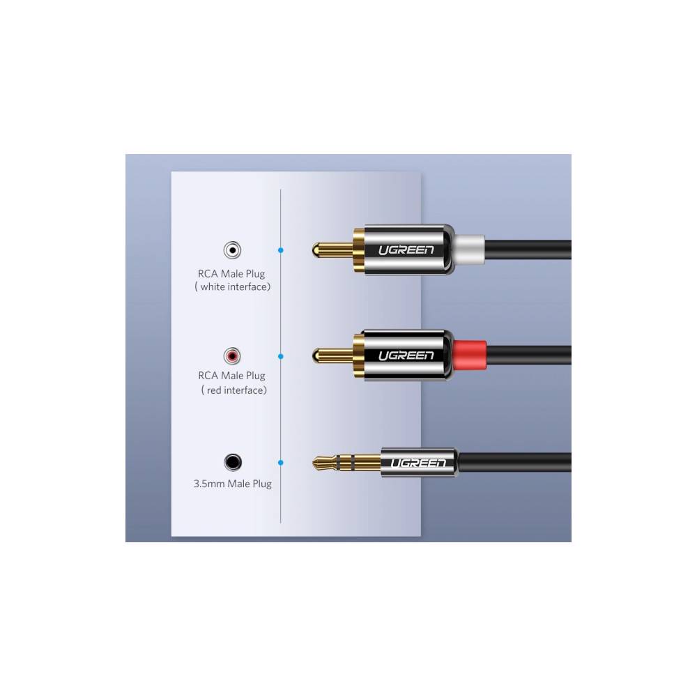 აუდიო კაბელი UGREEN AV116 (10590) 3.5mm to 2 RCA audio cable adapter male to male 3.5mm Audio Line to dual lotus head line 2 rca Aux Audio Cable 3m (Black)