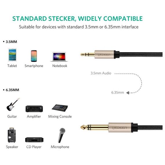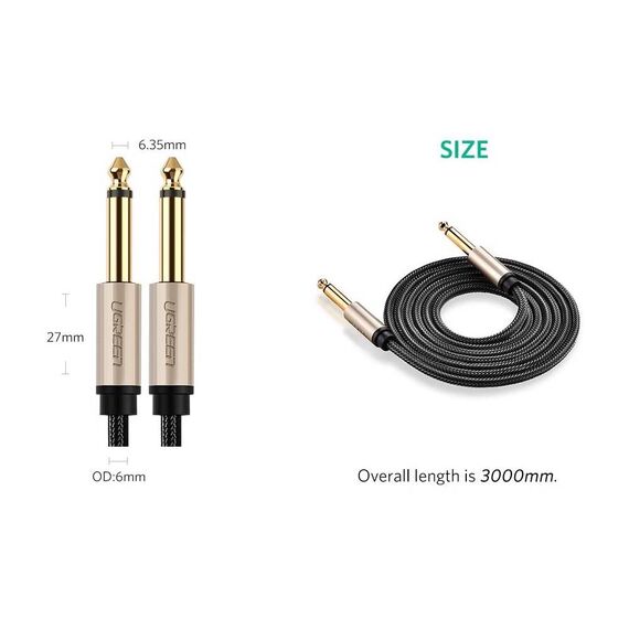 აუდიო კაბელი UGREEN AV127 (10629) 3.5mm to 6.35mm TRS Stereo Audio Cable 3m, Gray
