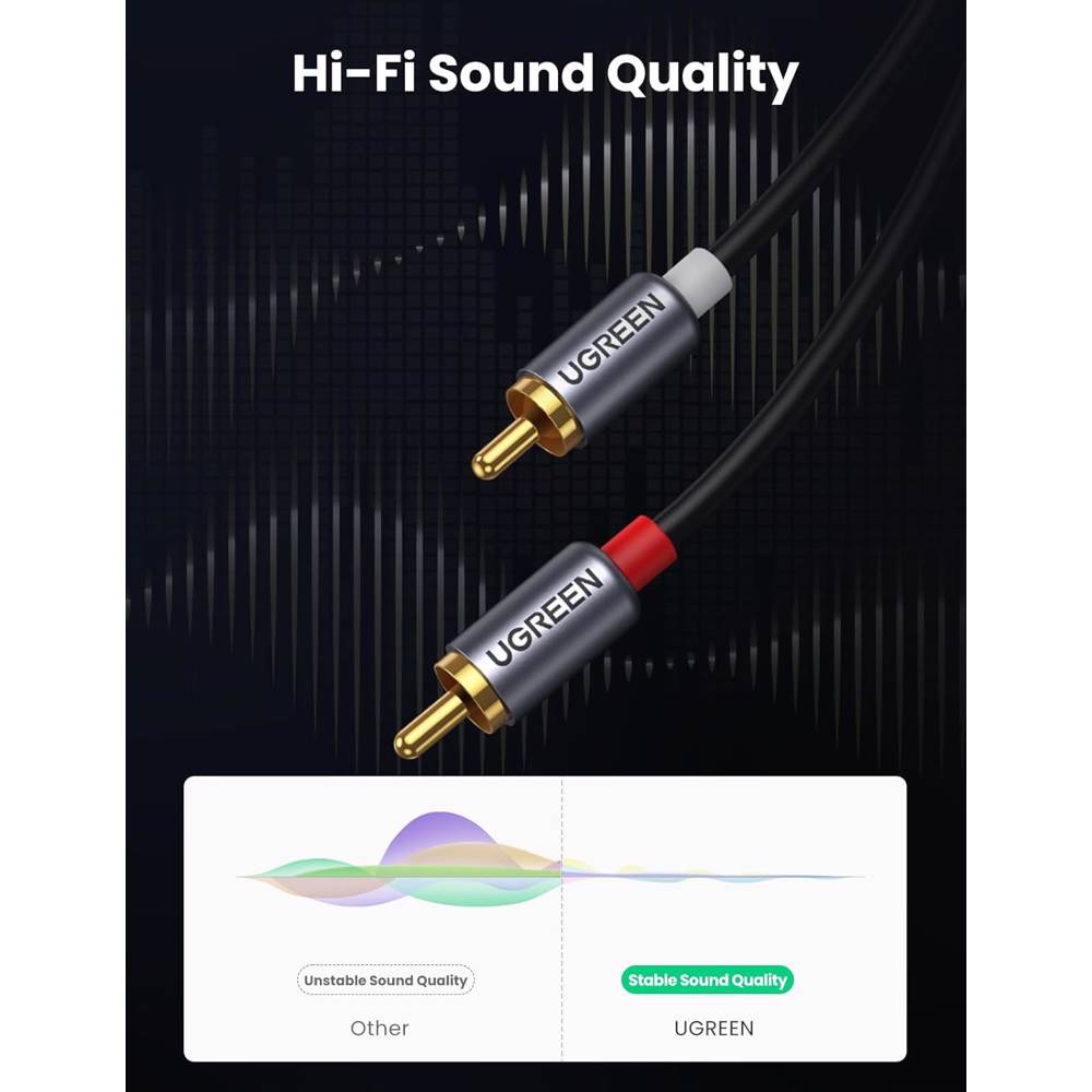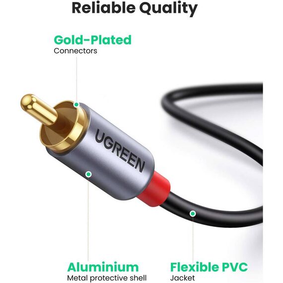 აუდიო სადენი UGREEN CM451 (20193), Type-C Male to 2*RCA Male Audio Cable With Chip, 1.5m, Black/Grey