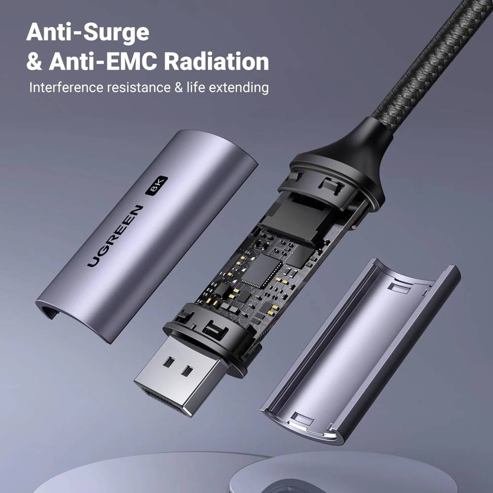 ვიდეო კაბელი UGREEN CM556 (25158), 8K, Type-C to DisplayPort, 2m, Black/Grey