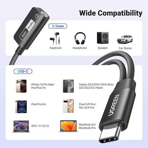 აუდიო ადაპტერი UGREEN CM721 (25837), Type-C to 3.5mm Audio Adapter with Power Delivery, Black