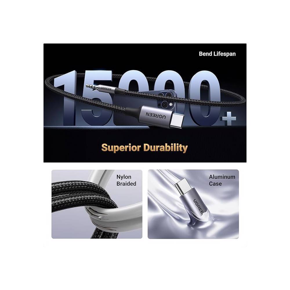 აუდიო ადაპტერი UGREEN CM734 (35056), Type-C to 3.5mm Aux Cable, 1M, Grey