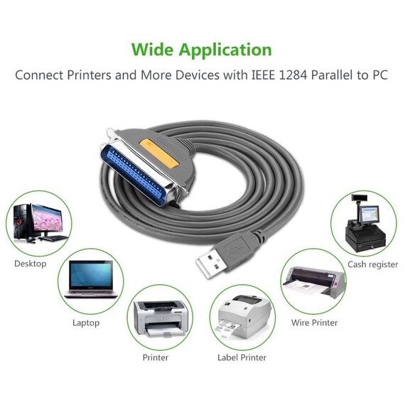 პრინტერის კაბელი UGREEN CR124 (20225) USB to CN36 IEEE1284 Parallel Printer Cable 2m