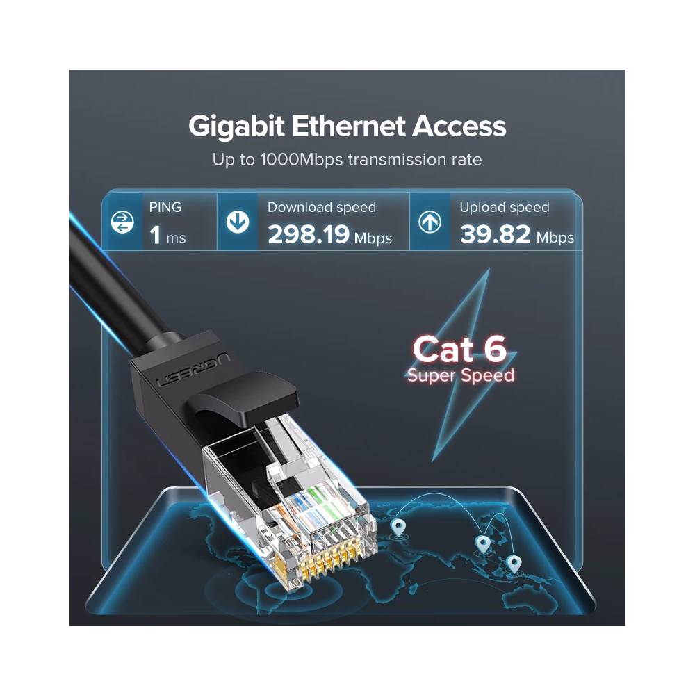 ქსელის კაბელი UGREEN NW102 (20165) Cat6 Patch Cord UTP Lan Cable, 15m, Black