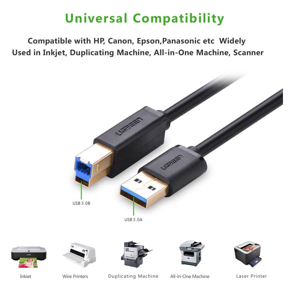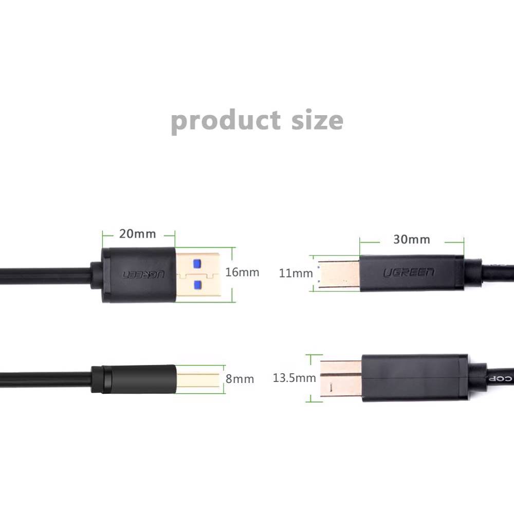 პრინტერის კაბელი UGREEN US210 (10372) USB-B to USB-A Print Cable, 2m, Black