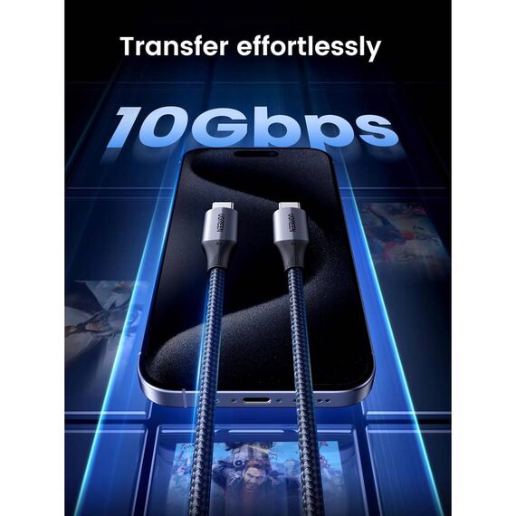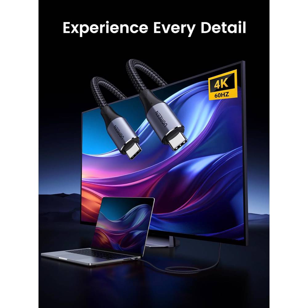 ვიდეო კაბელი UGREEN US355 (80150), 4K Video Cable , 100W, Type-c To Type-c 3.2 Gen 2 Cable, 1m, Black