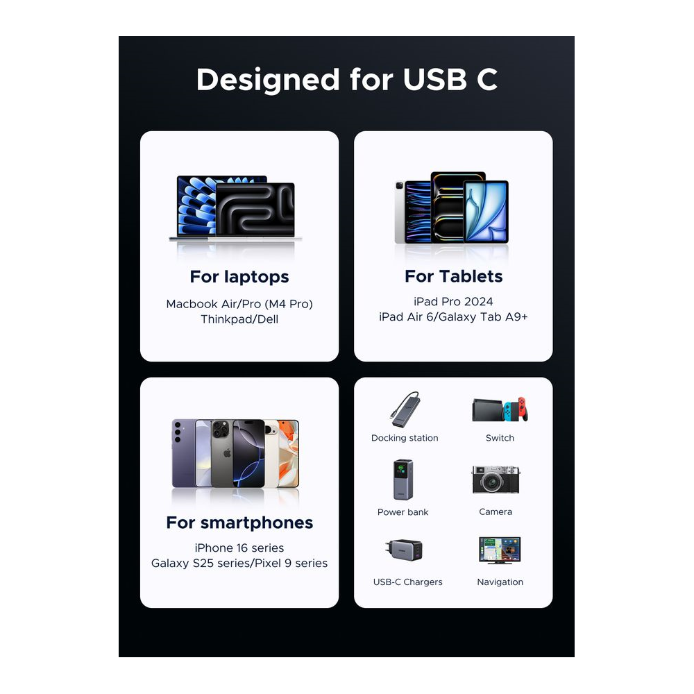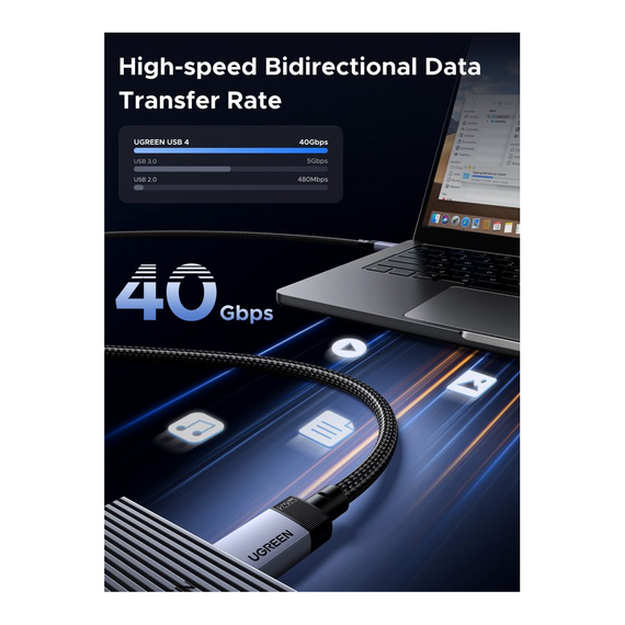 USB კაბელი UGREEN L705 (65175), 240W, Type-C to Type-C Cable, 1m, Grey