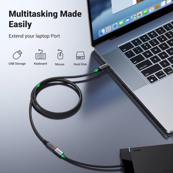 USB ადაპტერი UGREEN US372 (45191), 100W, Type-C Extension Cable, 1m, Black