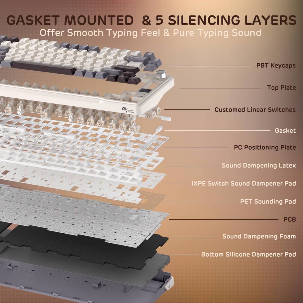 კლავიატურა Royal Kludge RK L98 RGB Mechanical Keyboard, Cream Switch, Hot Swappable, Wireless, Type-C, Bluetooth, 2.4GHz, Sandalwood Brown