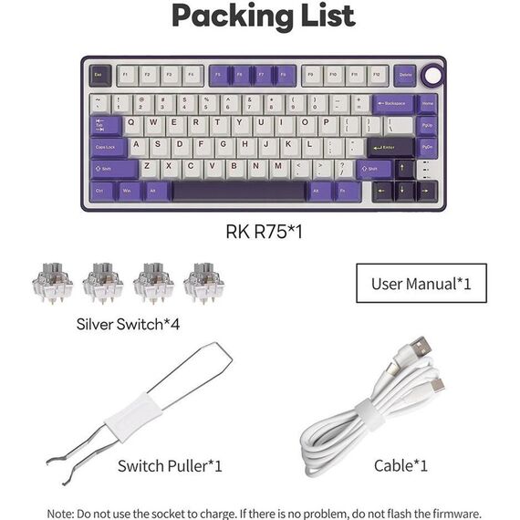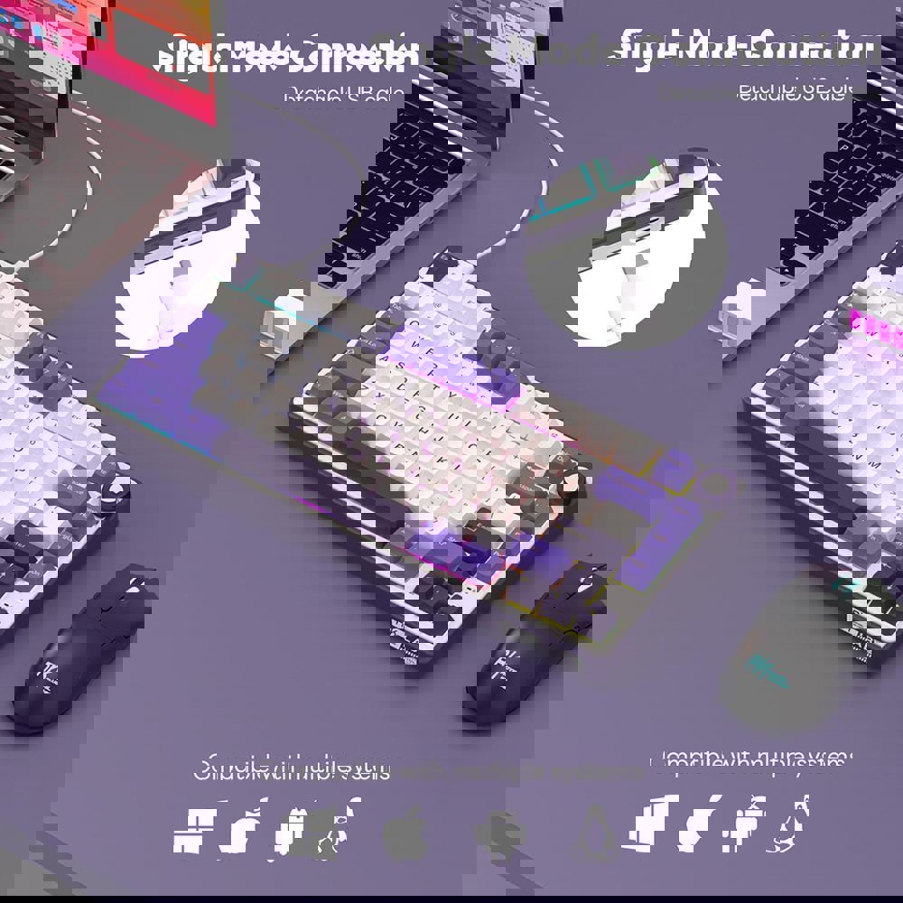 კლავიატურა Royal Kludge RK R75 RGB Mechanical Keyboard, K silver switch, Hot Swappable, Type-C wired, Blackberry