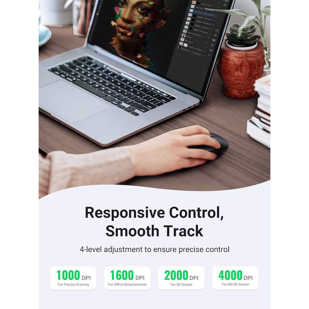 მაუსი UGREEN MU001 (90531), Wireless, Bluetooth, USB, Mouse, Starry Black