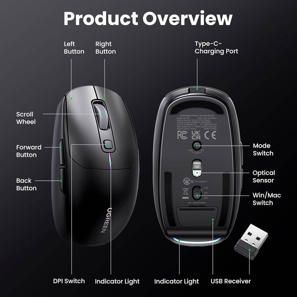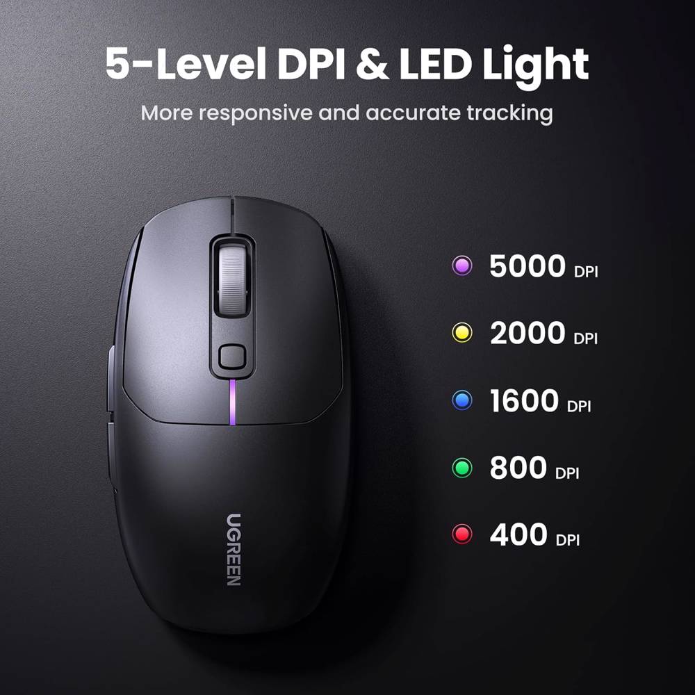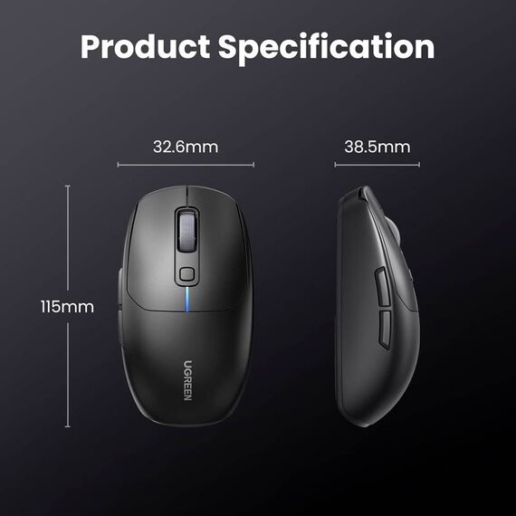 მაუსი UGREEN MU103 (90539), Wireless, 2.4GHz, Bluetooth, USB, Mouse, Black