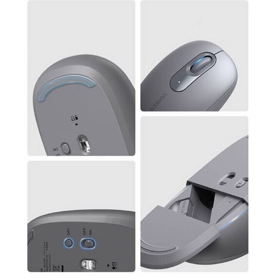 მაუსი UGREEN MU105 (90669), Wireless, USB, Mouse, Moonlight Gray