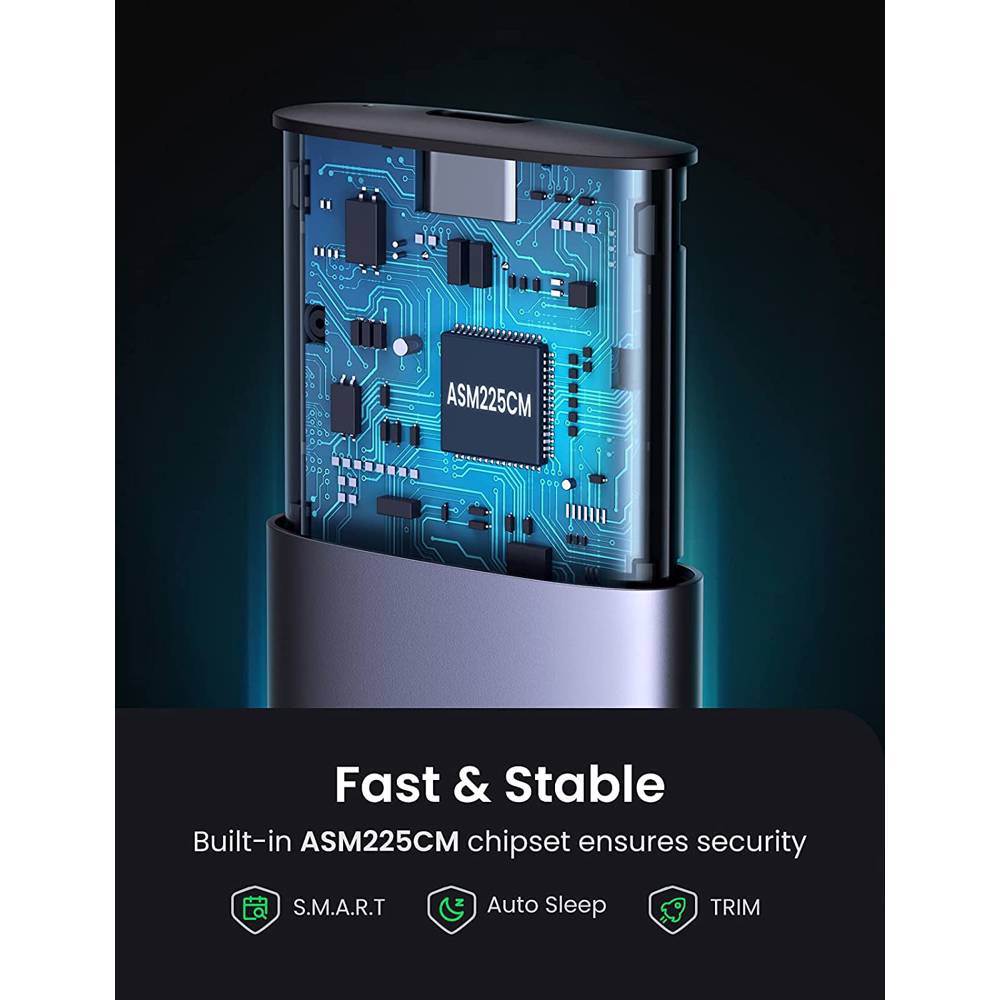 მყარი დისკის ქეისი UGREEN (10903) M.2 SATA NGFF SSD Enclosure, Aluminum USB 3.1 Gen 2 to B-Key 6Gbps with External UASP Solid State Drive Enclosure